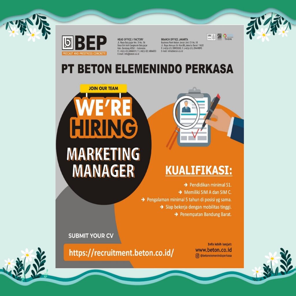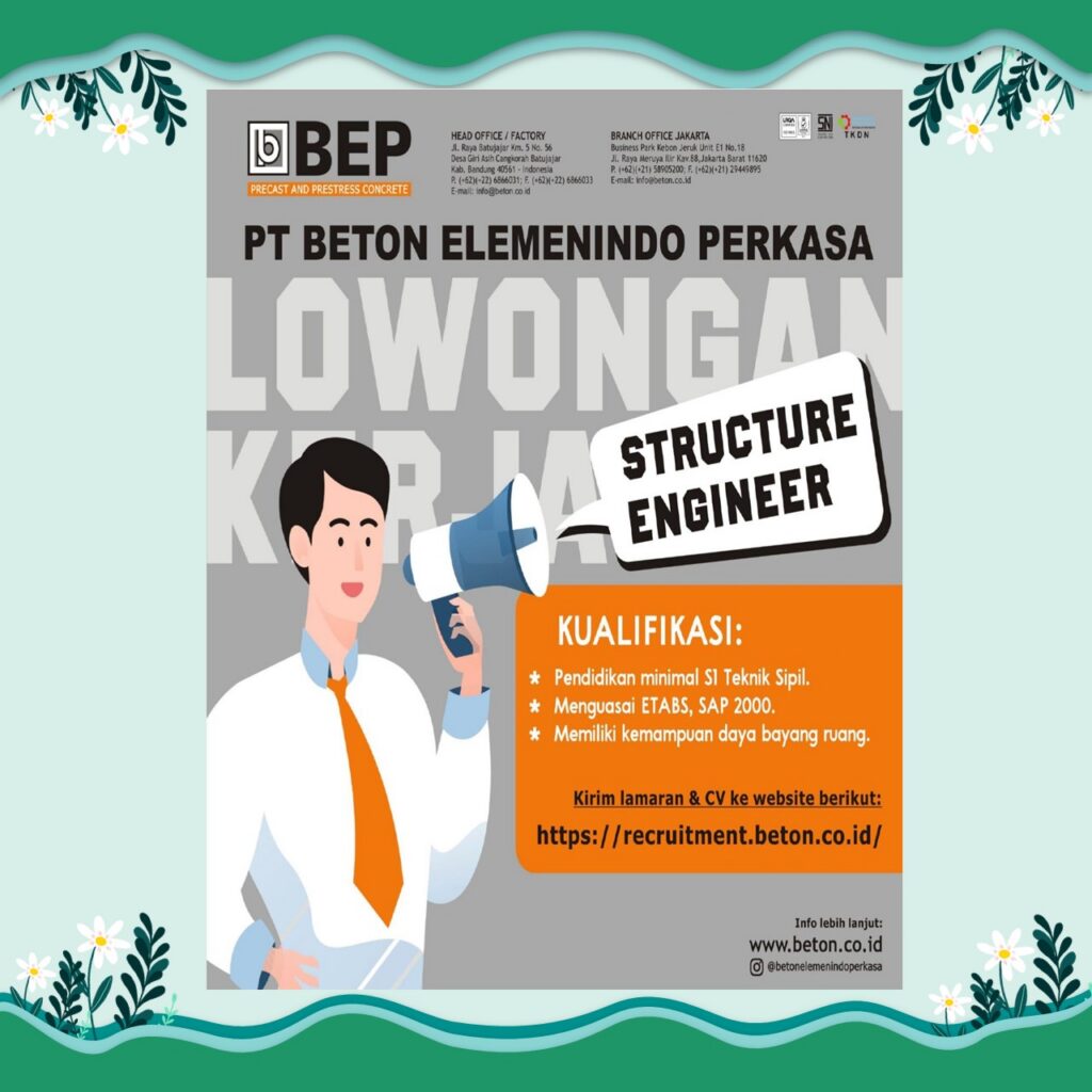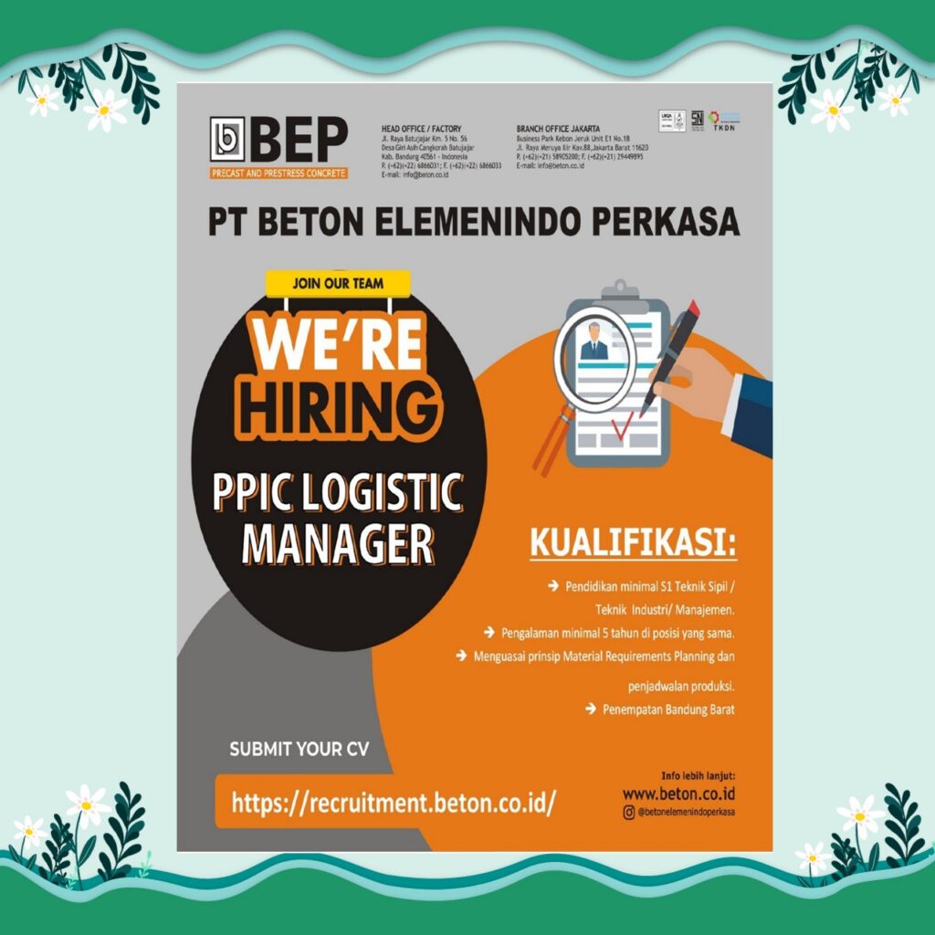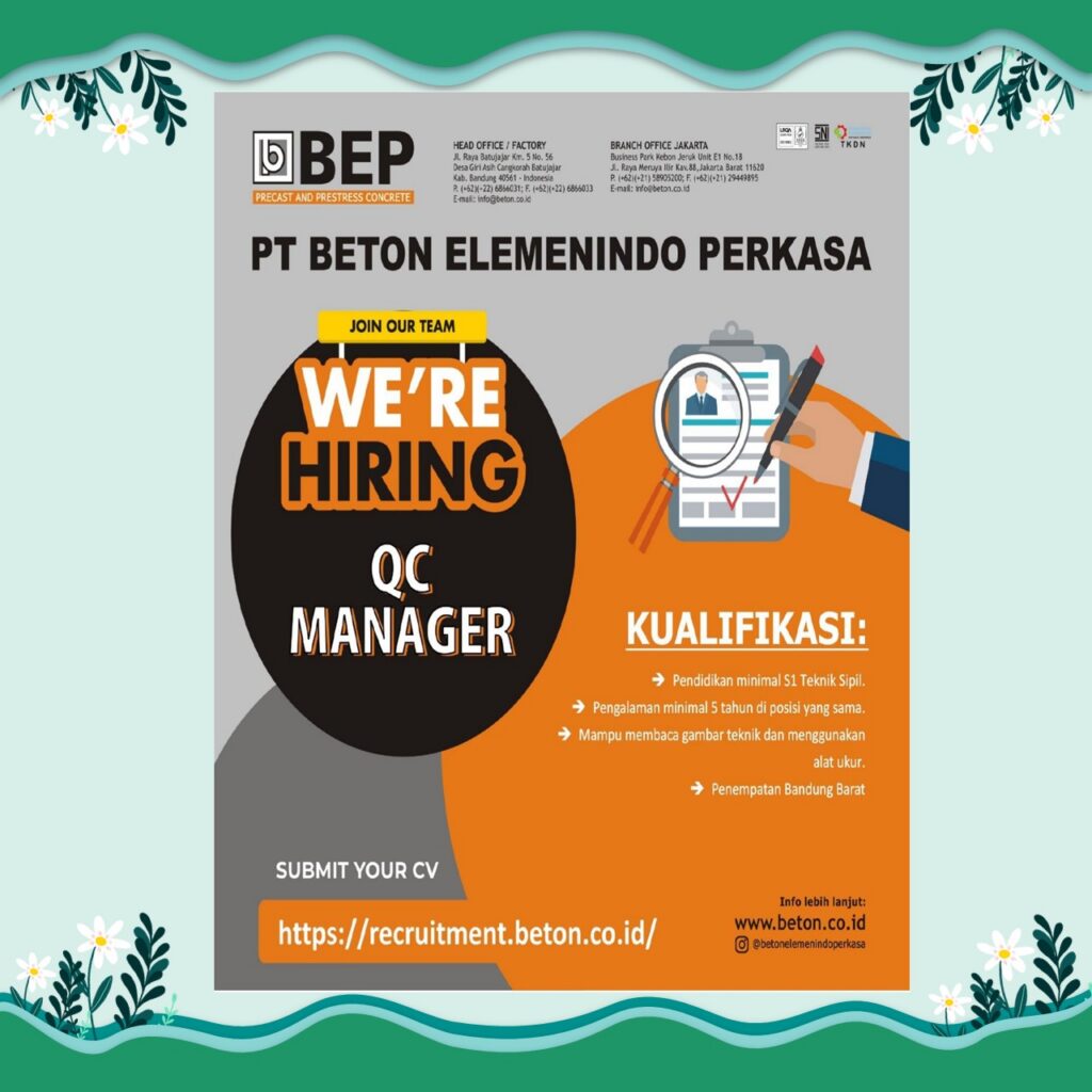 Jangan lewatkan kesempatan ini! Segera kirimkan lamaran terbaikmu dan raih karier impianmu bersama PT Beton Elemenindo Perkasa 💼✨