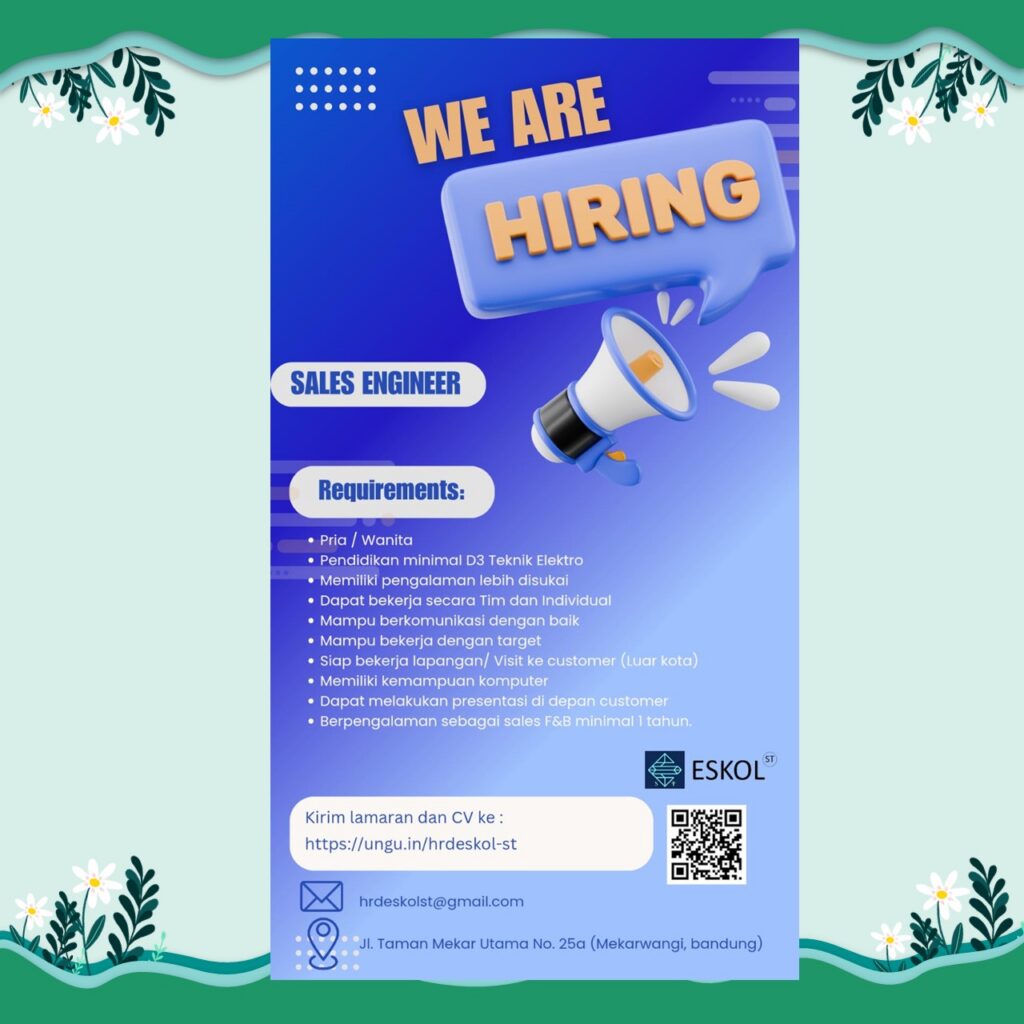 PT Eskol membuka kesempatan bagi kamu yang ingin berkarier sebagai Sales Engineer! 🚀