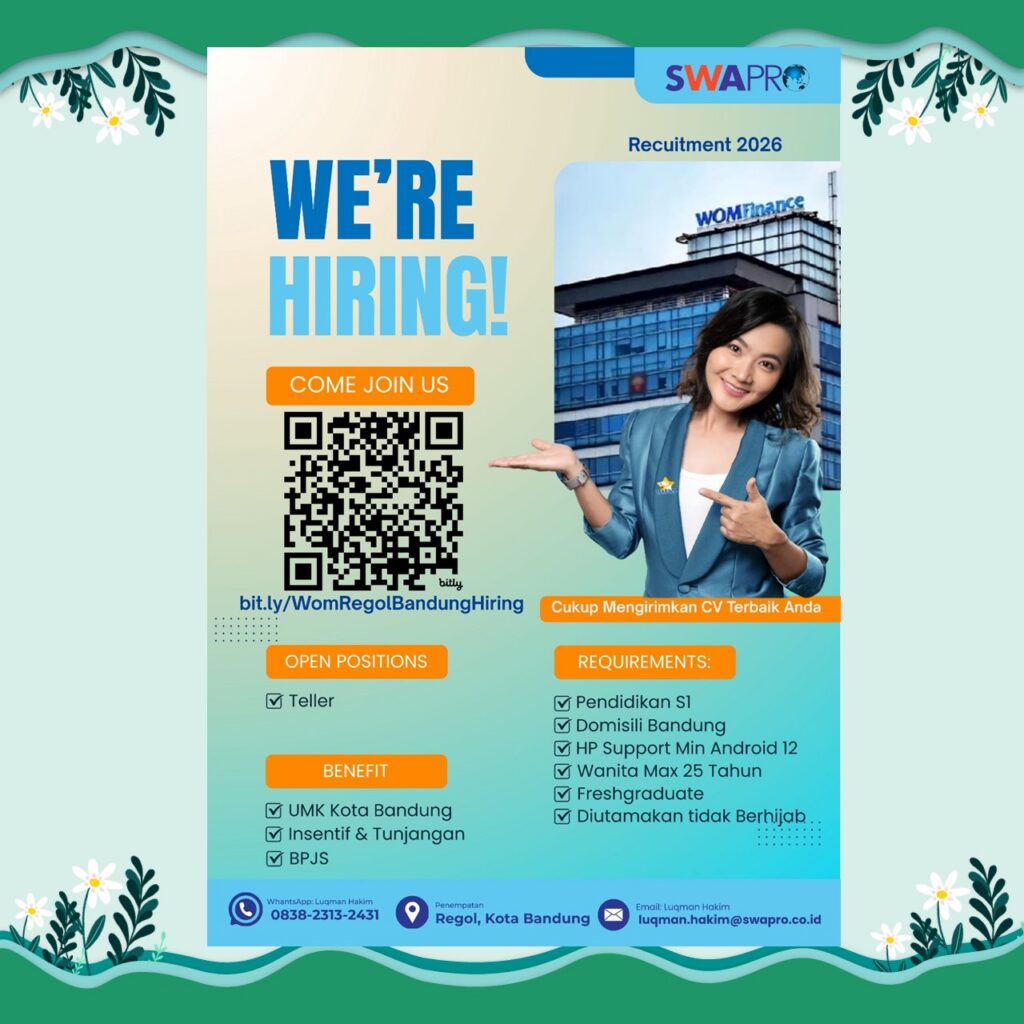 Kami lagi buka kesempatan untuk posisi Teller penempatan Regol, Kota Bandung!