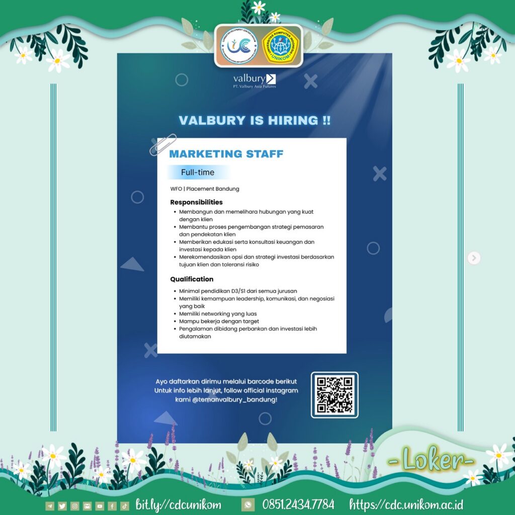 #lokerbandung #marketingjob #loker2025 #karirbandung #informasiloker #valbury #cdcunikom
