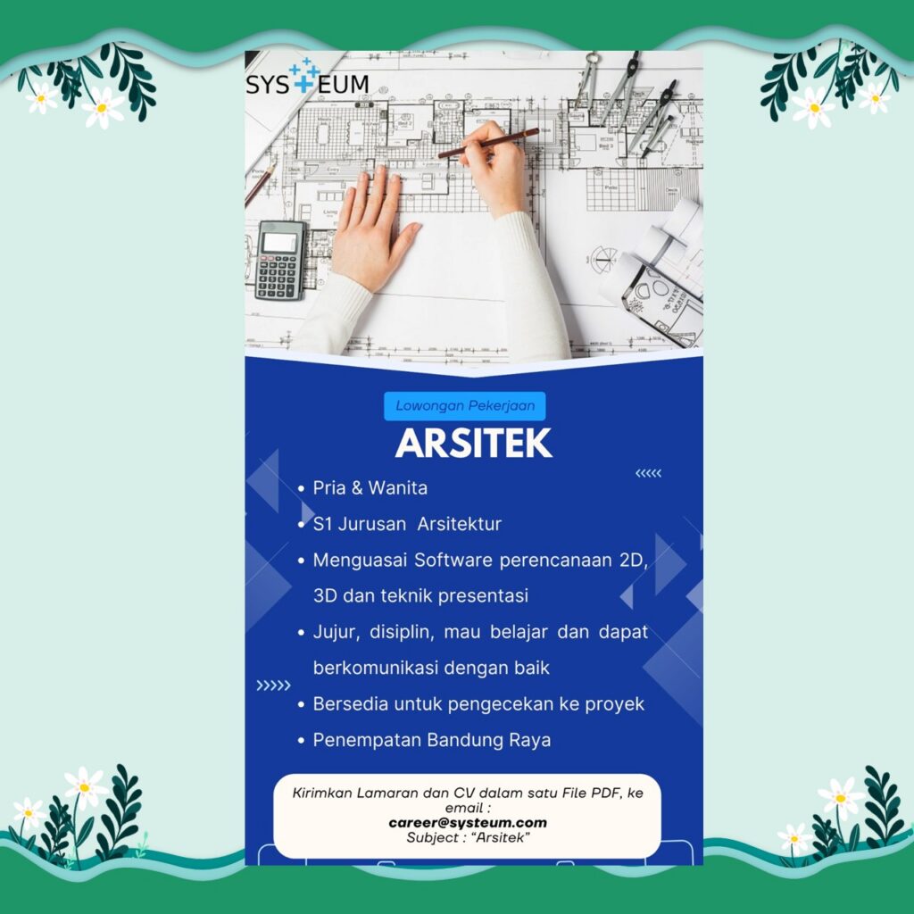 Kesempatan bergabung bersama SYSTEUM kini terbuka untuk posisi Arsitek.