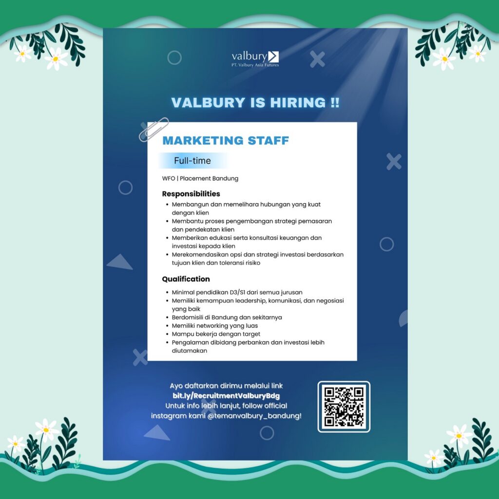 #LowonganKerja #LokerBandung #ValburyIsHiring #MarketingStaff #Karier #CDCUNIKOM