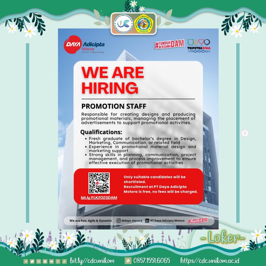 #lowongankerja #lokerbandung #karirbandung #wearehiring #jobvacancy #dayaadiciptamotora #joinourteam #cdcunikom